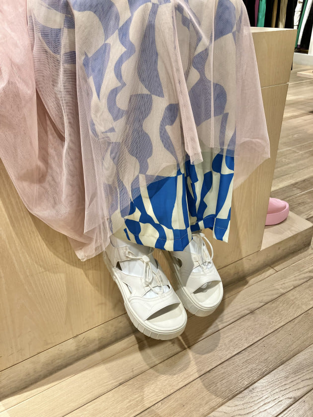 足もとはスポーティーな気分を盛り上げる<PUMA>との別注スニーカーを合わせてみました。人気の厚底ソールを採用しています(^^)