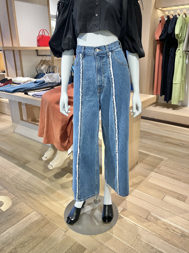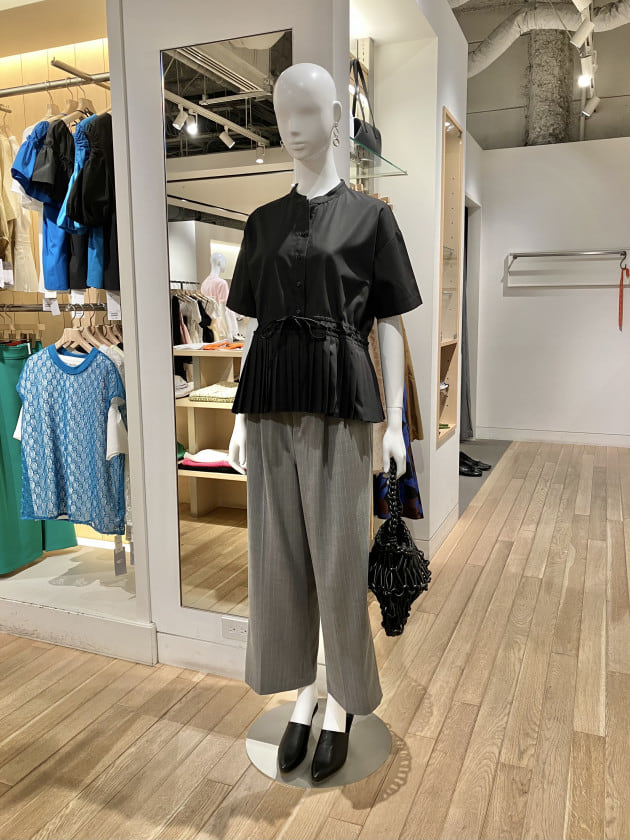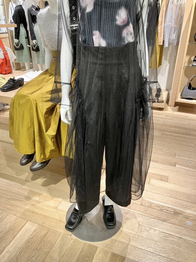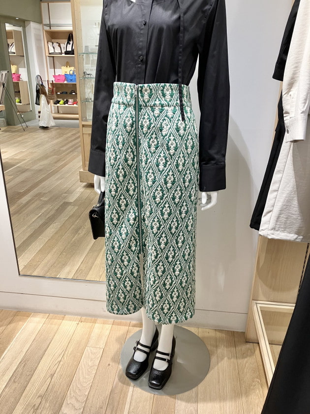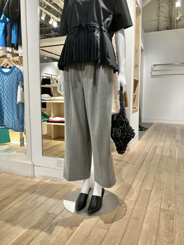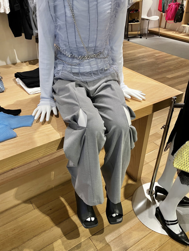 スーツ地のパンツはカットアウトデザインが入る事で、カッコ良さに加えてかなり女性らしくもなりますね〜。また、さりげない開きなので、いやらしさを感じる事なく履けますし、流行のレースタイツと合わせてチラ見せも可愛いです!ぜひ!