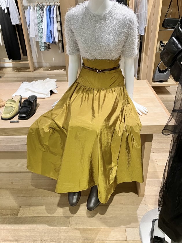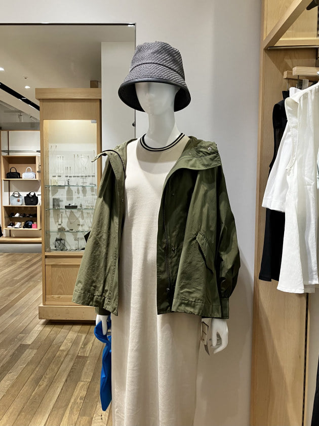 マウンテンパーカーはフレア型でエレガントに着られるデザインです。春アウターにぴったりの素材感となっています!