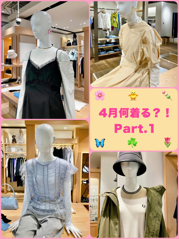 本日はマネキンコーディネートの紹介と、今、そして4月にもぴったりのアイテムをご紹介させていただきます!!