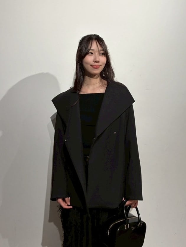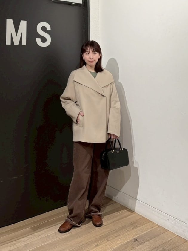 大きめ襟で、ワントーンスタイルもこなれ感がでます。