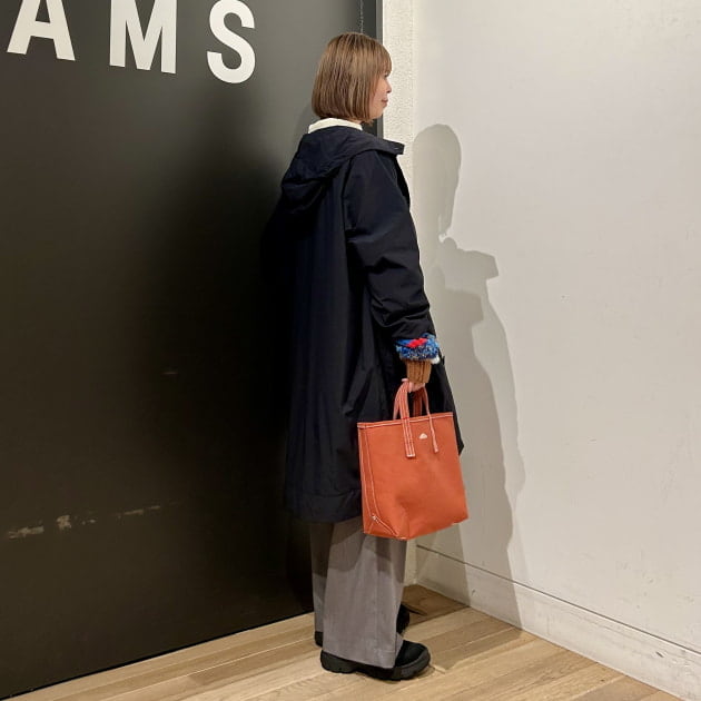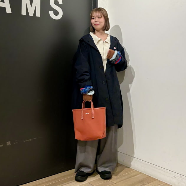 かなりゆとりがあるので厚手のニットとも合わせられます。