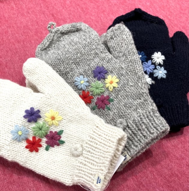 お花の刺繍がとっても可愛い、毎年大人気のミトンや
