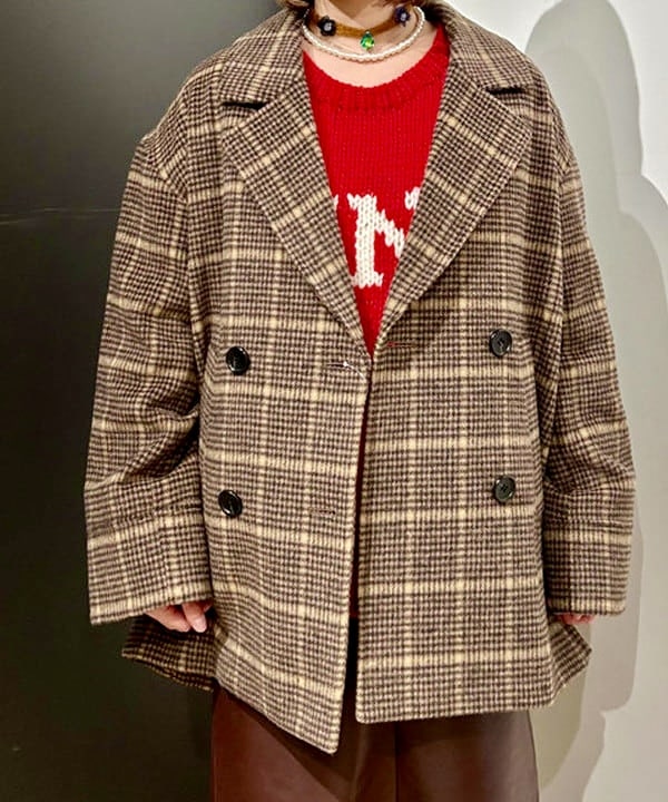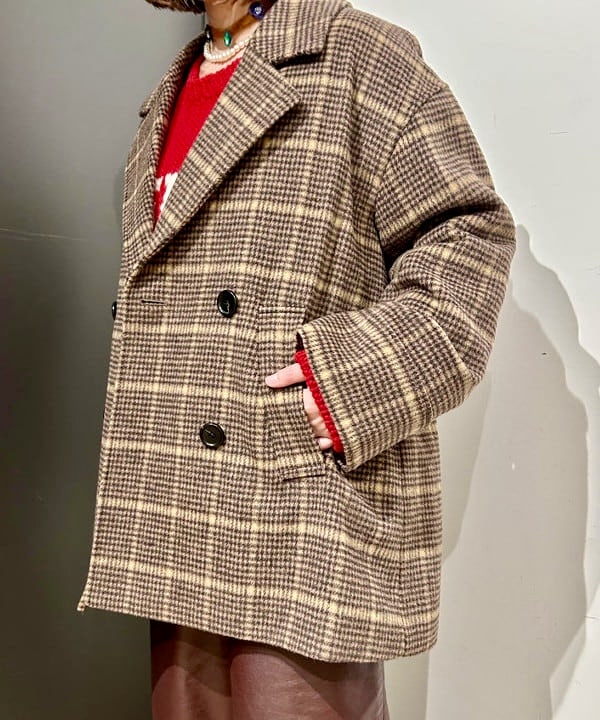 Ray BEAMS/チェック ビーバー ダブル ハーフコート