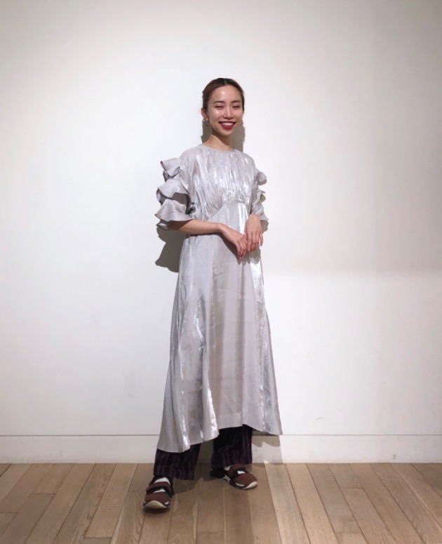 上から着ているキャミワンピースも、肩紐の部分がアシンメトリーなデザインになっております!!