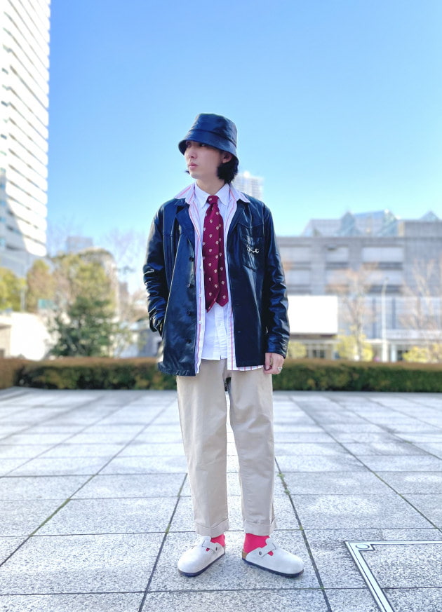 インナーのシャツにタイを締めてみたり。いつもと違うスタイリングが楽しめます。