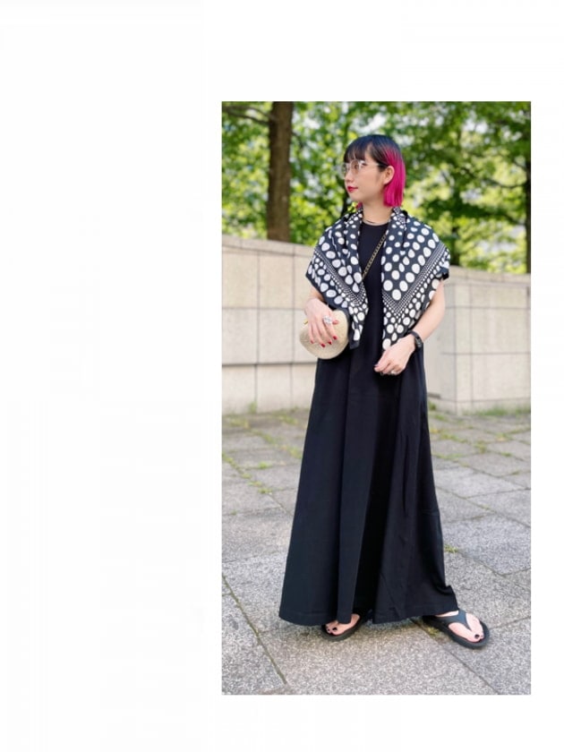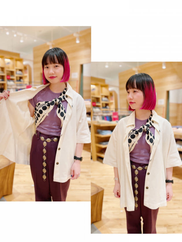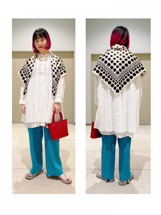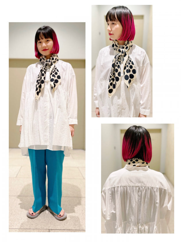 春夏は勿論、秋冬にも活用出来そうな配色。どこの色を拾ってスタイリングを組んでも成り立ち、ギフトにも手を出しやすい1枚だと思います。