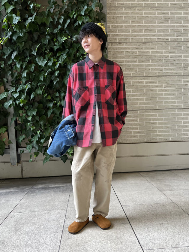 シャツの赤×デニムの相性は最高です。