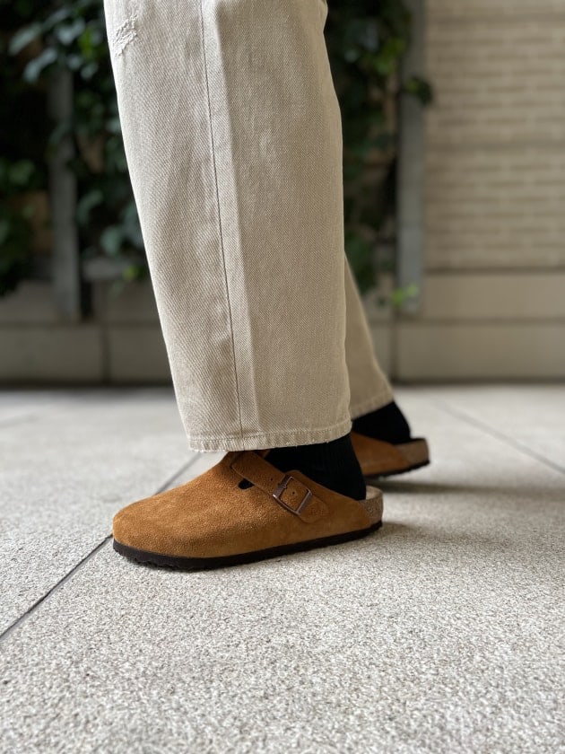足元にはBIRKENSTOCKのBostonを。