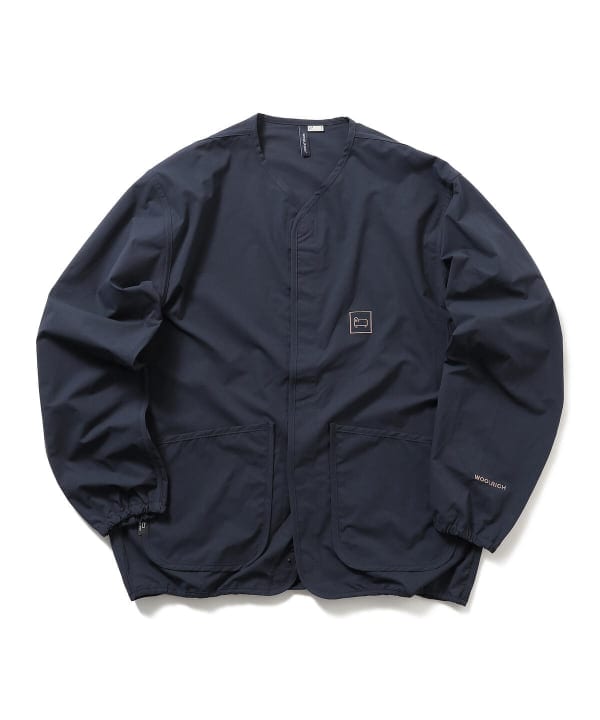ノーカラーなので、シャツやフーディー合わせもしやすいデザイン。