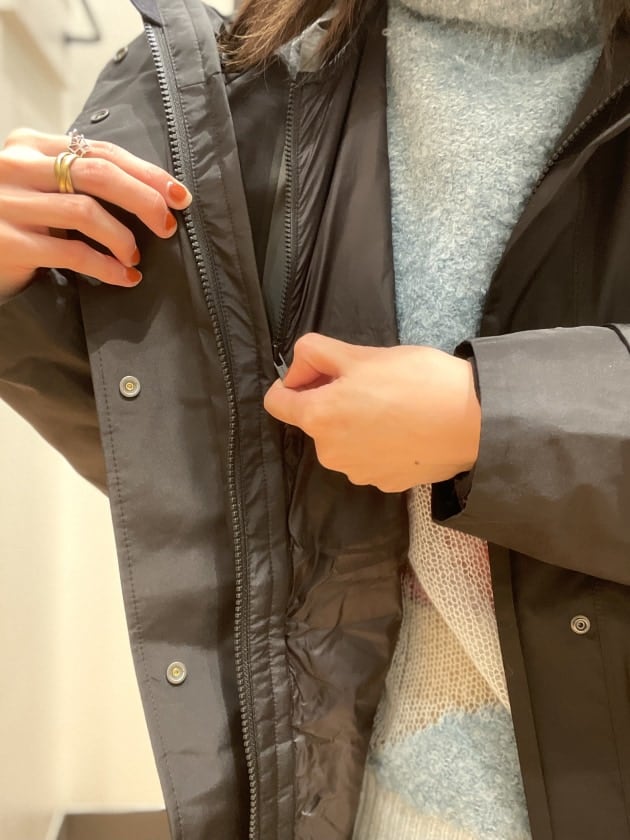 こちらも撥水加工付きで、中綿には光電子ダウンを採用。ずーっと自然な暖かさをキープしてくれます!