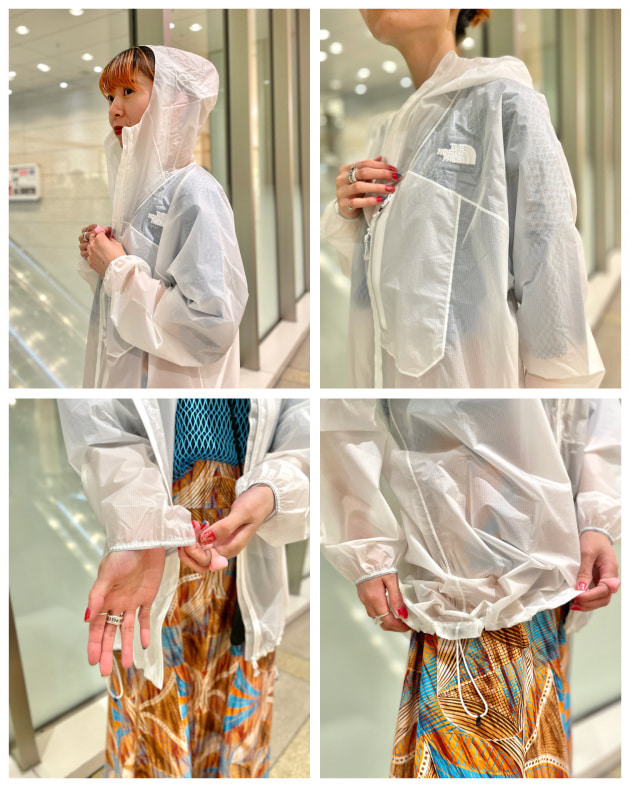 裾の内側にはドローコード付きで、長さ調節可能です。