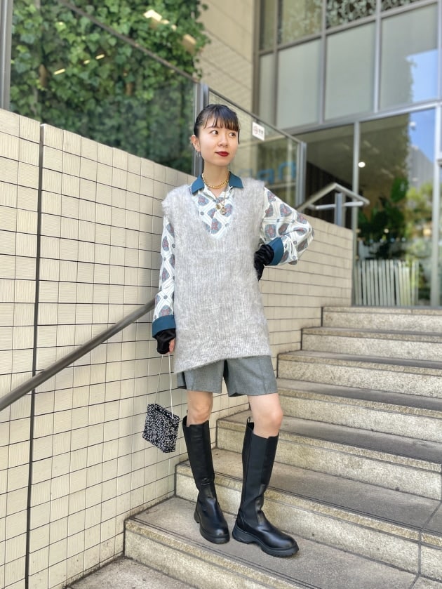 襟は首元で留まっているので、上からジャケットやベストを合わせて、襟とリボンを出すのも可愛いですよ♪