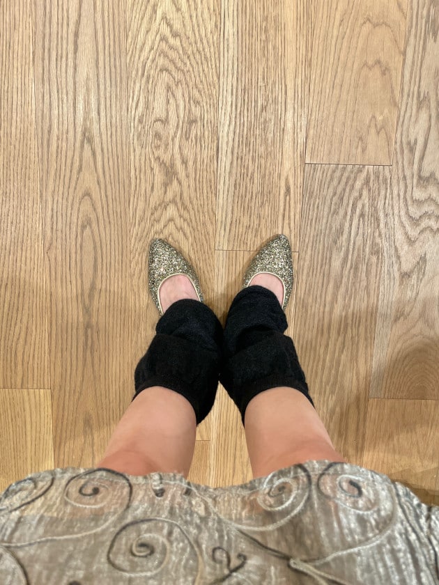 袖口とウエストにはゴムが入っているのでフィット感があり、スカート部分はやや、ふわっと広がります。