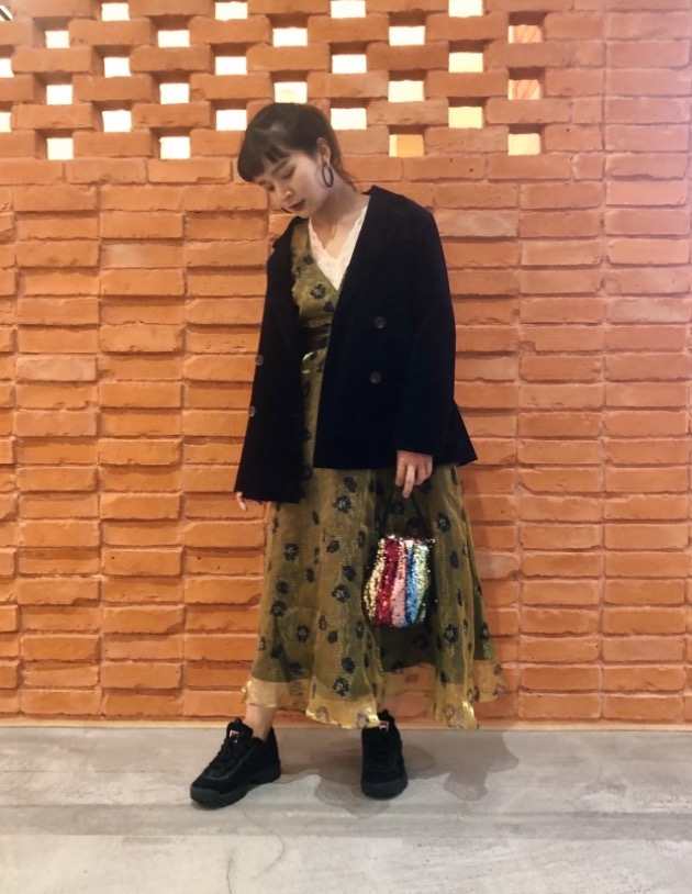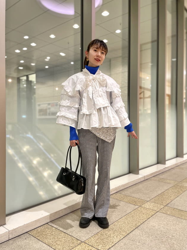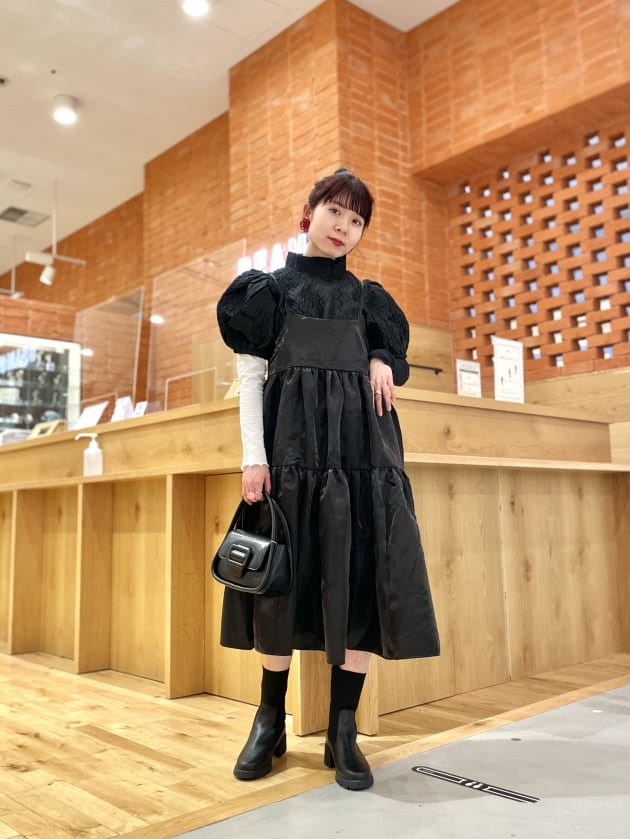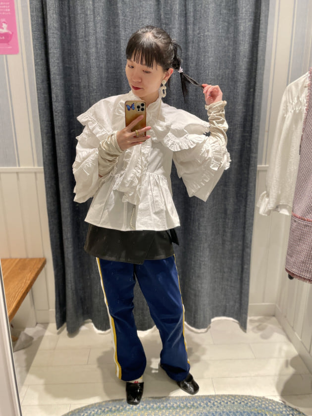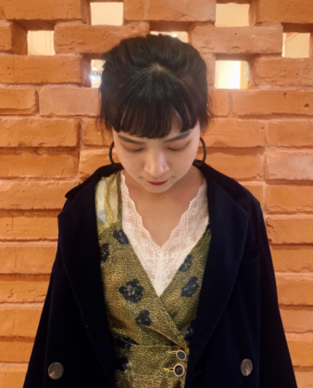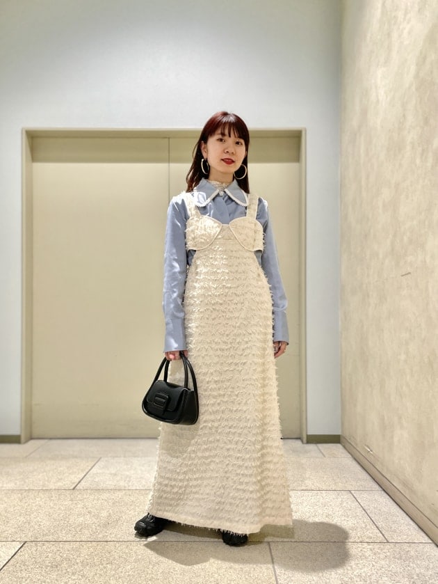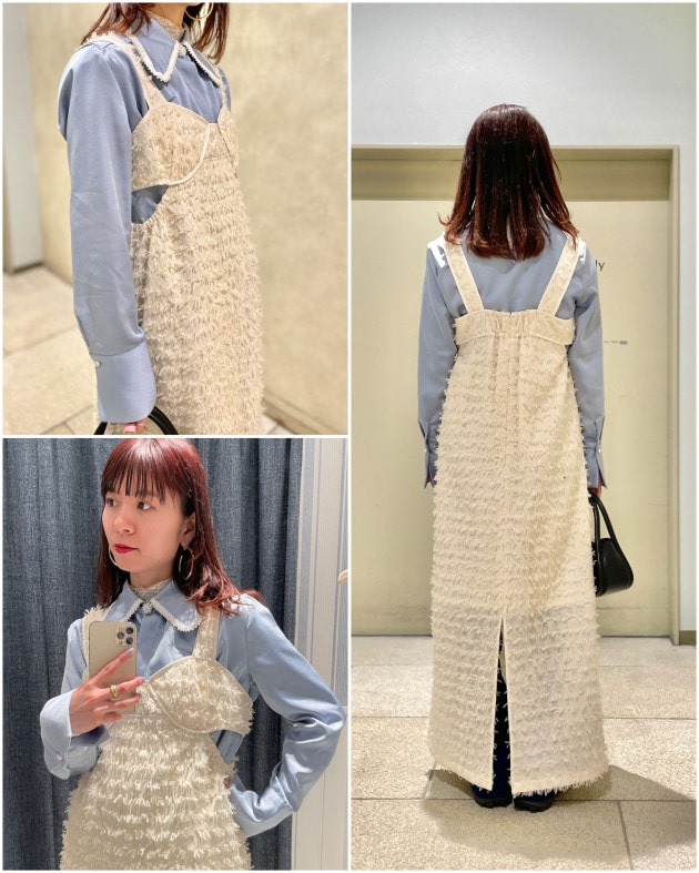 上から更に付け襟を重ねて、思いっきりガーリーに♡首元のボリュームがあるので、ヘアはアップスタイルにして、すっきりさせました。