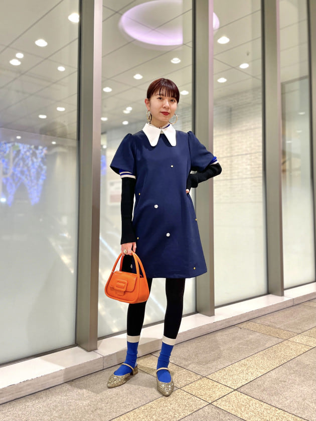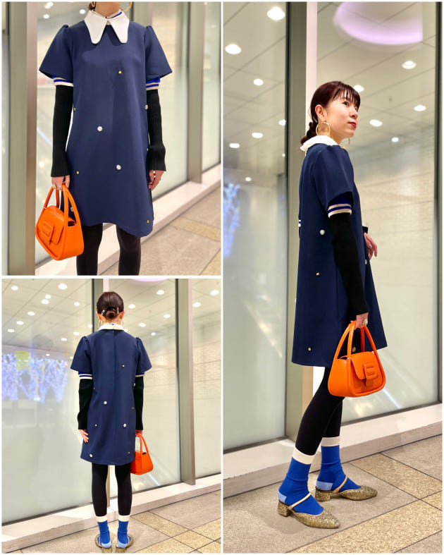ワンピースが一枚で存在感抜群なので、合わせはシンプルに。