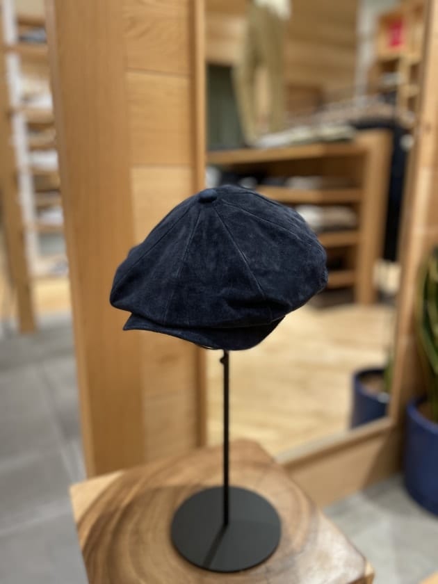 素材特有のシワ感が表情豊かなキャスケットです。ツバの部分はスエード素材なので、クラシックな雰囲気も残しています。スタイリングに軽快感をもたらしてくれるアイテムです。