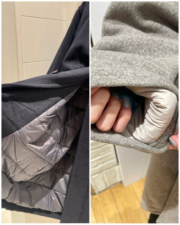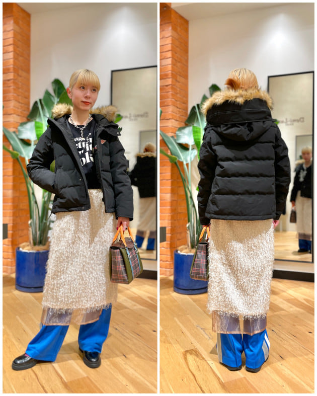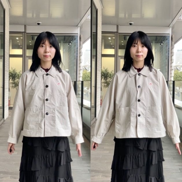 着丈は1.5cm差で、ヒップ上くらいのやや短丈なデザイン。