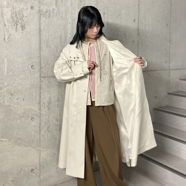 外すと、キレイめなステンカラーコートに変身します。