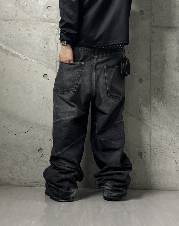 シルエットはかなりワイドで、裾にクッションがたまるくらいの長さが今っぽくてお気に入り。