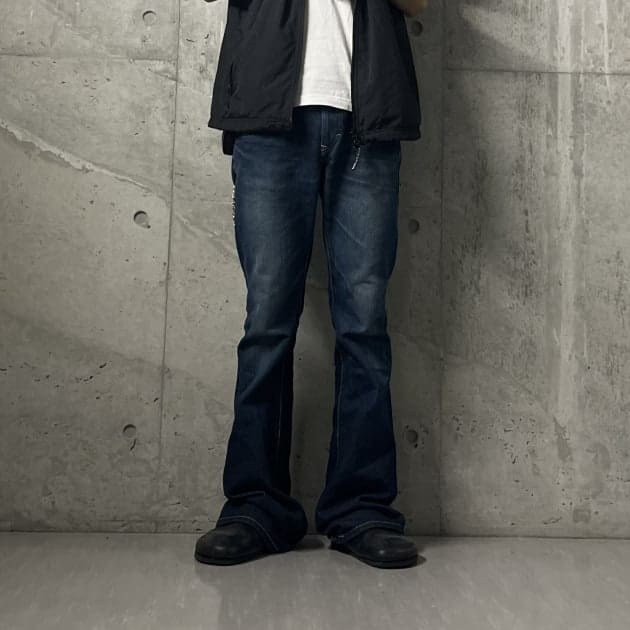 ボトムはワイドデニム。