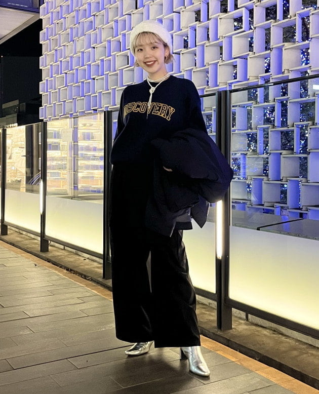 1コーデ目とは雰囲気がガラッと変わり、パンツスタイルです。