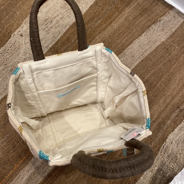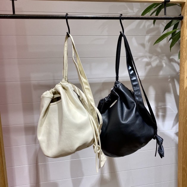 こちらはコンパクトなサイズ感の巾着型バッグです。