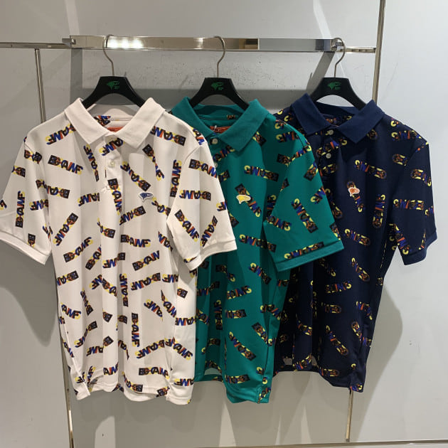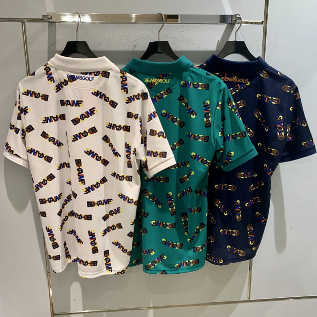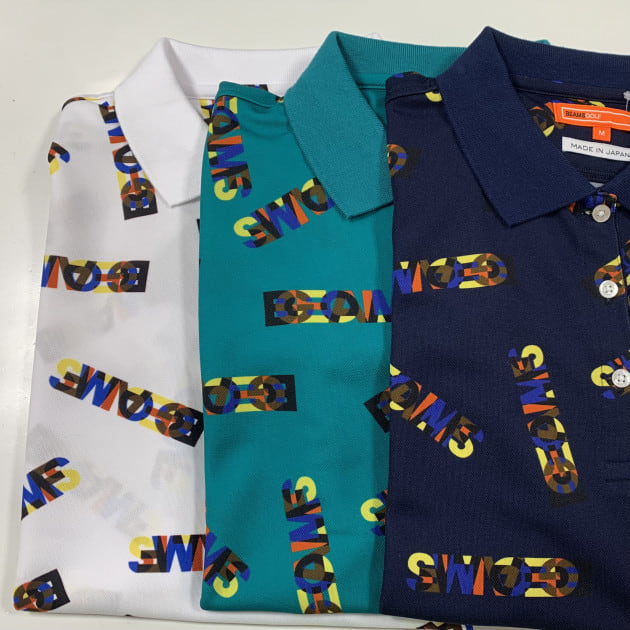 レイヤーロゴでポップなイメージの総柄ポロです♪