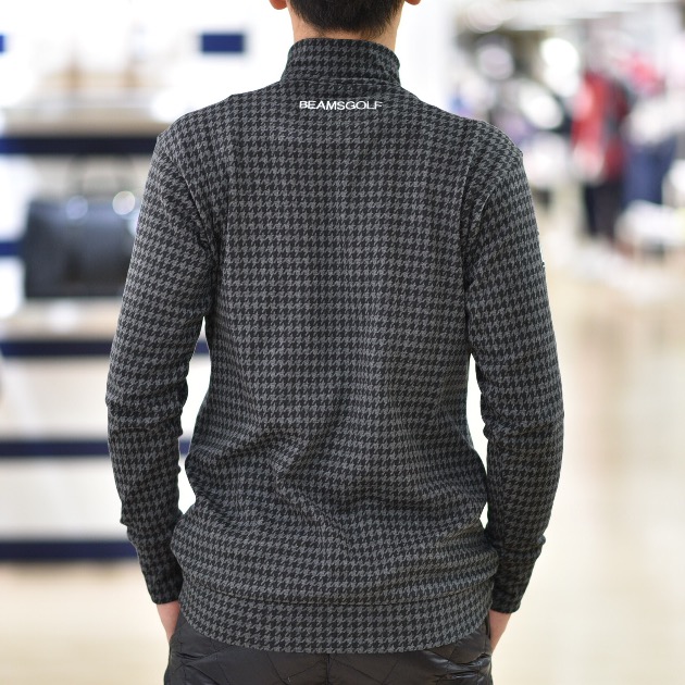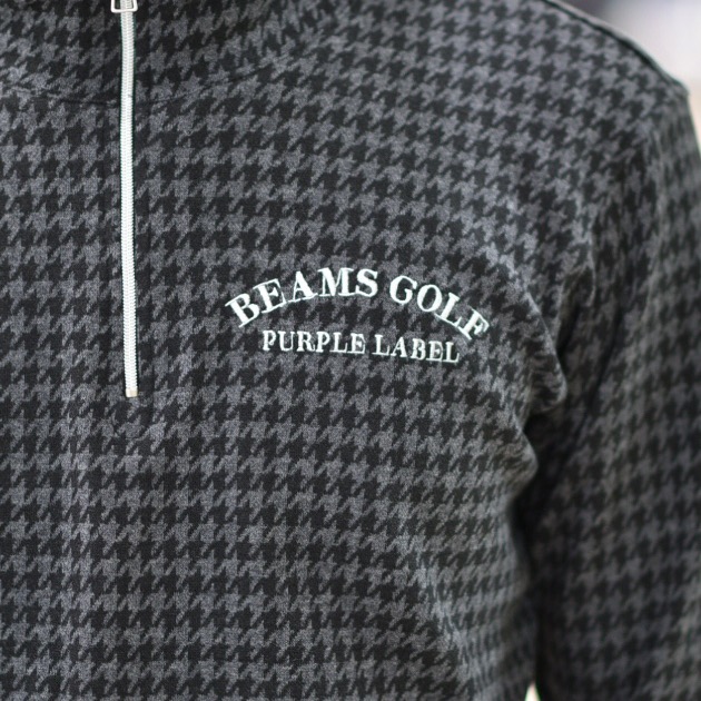 BEAMS GOLF オリジナルハウンドトゥースハーフジップシャツ