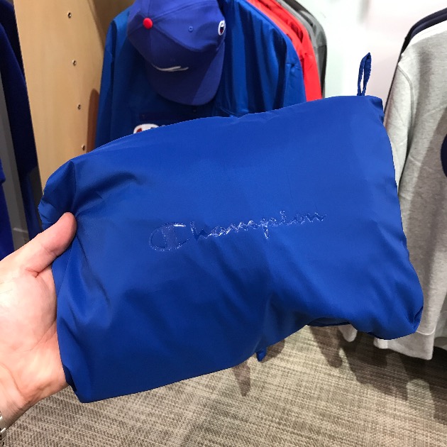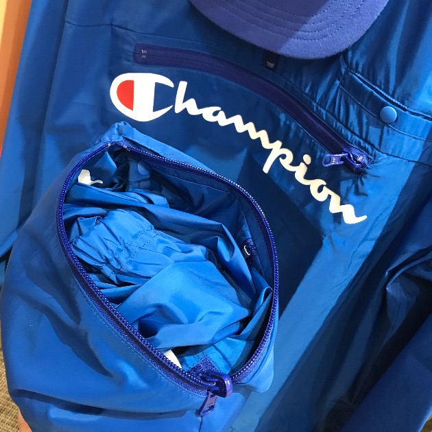 そして、正面のロゴ上のポケットは裏返してウエアを入れ込むと!