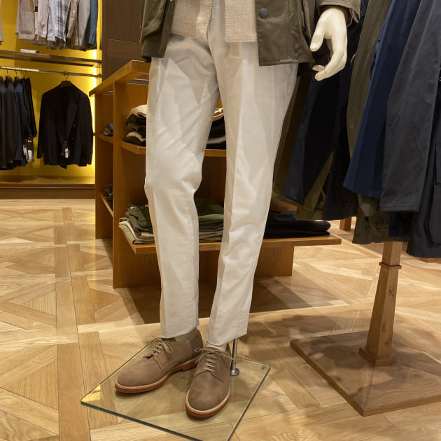 注目の「BRIGLIA」のシアサッカーイージーパンツ。こちらの別注アイテム、今シーズンからサイズスペックを変更し、より着用しやすくなりました。