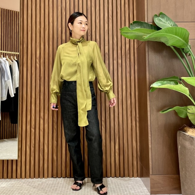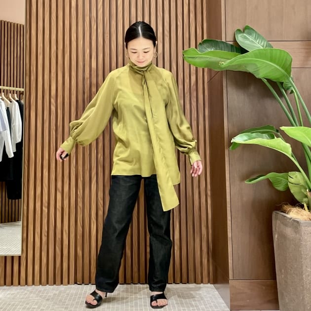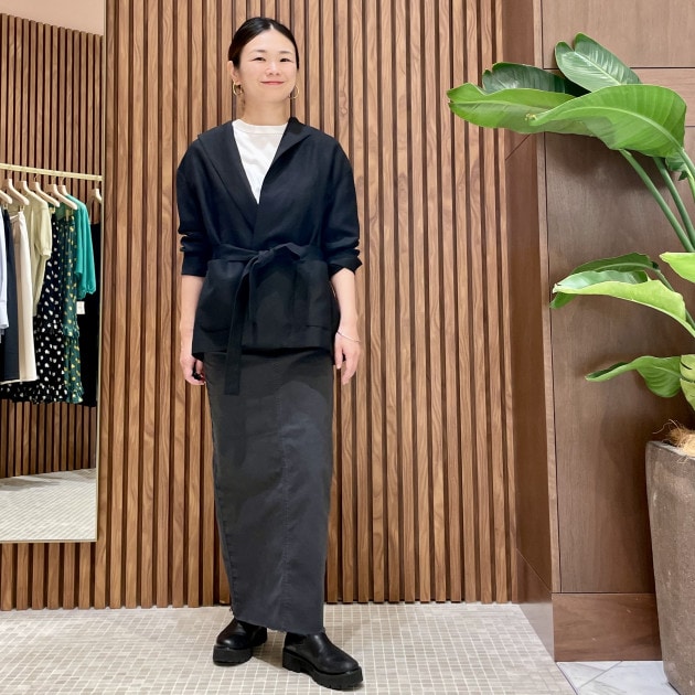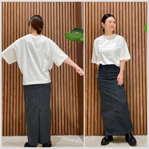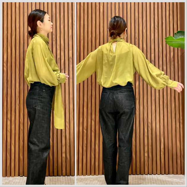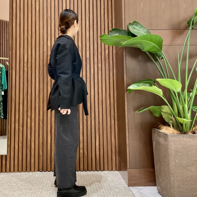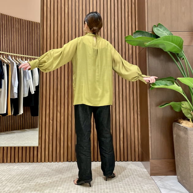 コンパクトなシルエットなのでボリュームのあるボトムスとも好相性!
