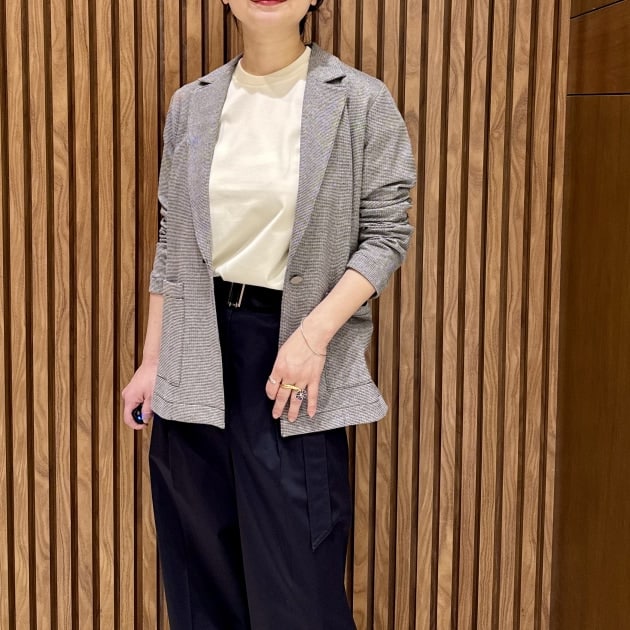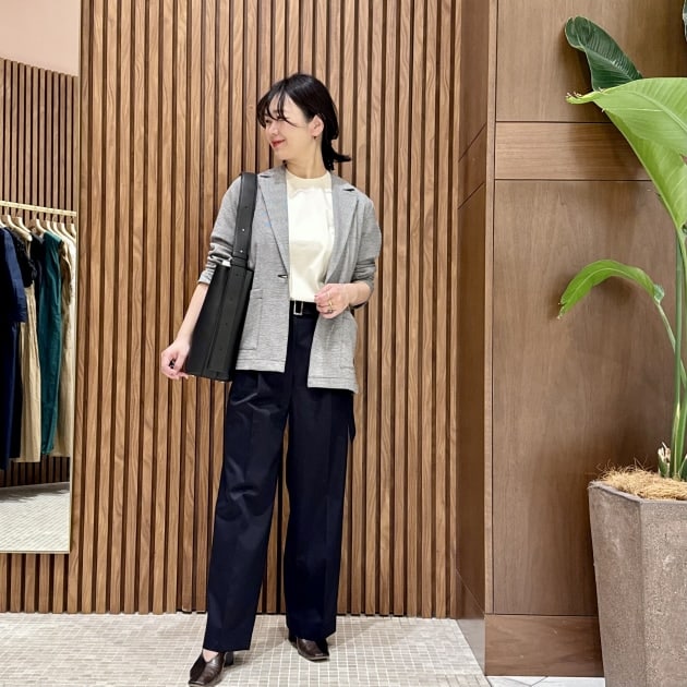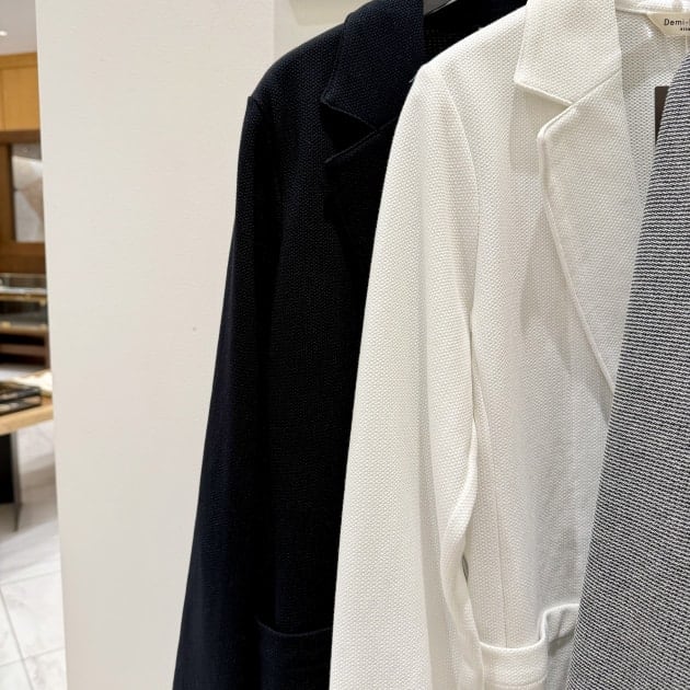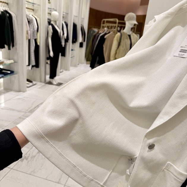 ノースリーブなので一枚では‥という方にはジレやジャケットとのコーディネートもおすすめです♪