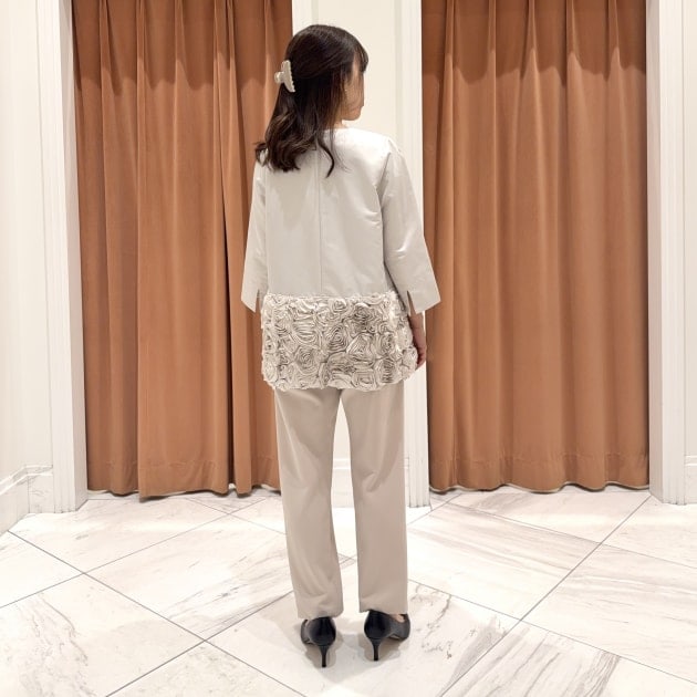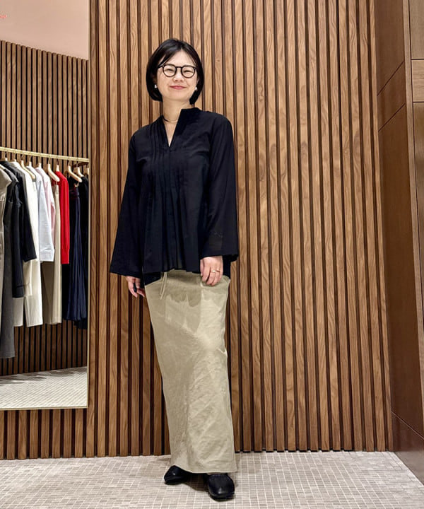 こちらも、体のラインを拾いすぎず、程良くゆとりを持たせたリラックスシルエット。