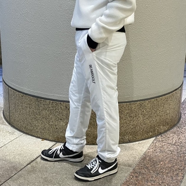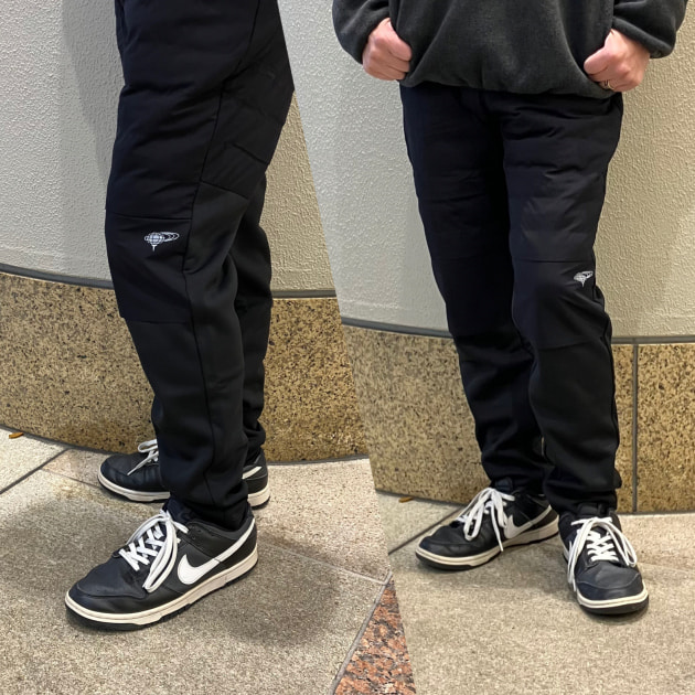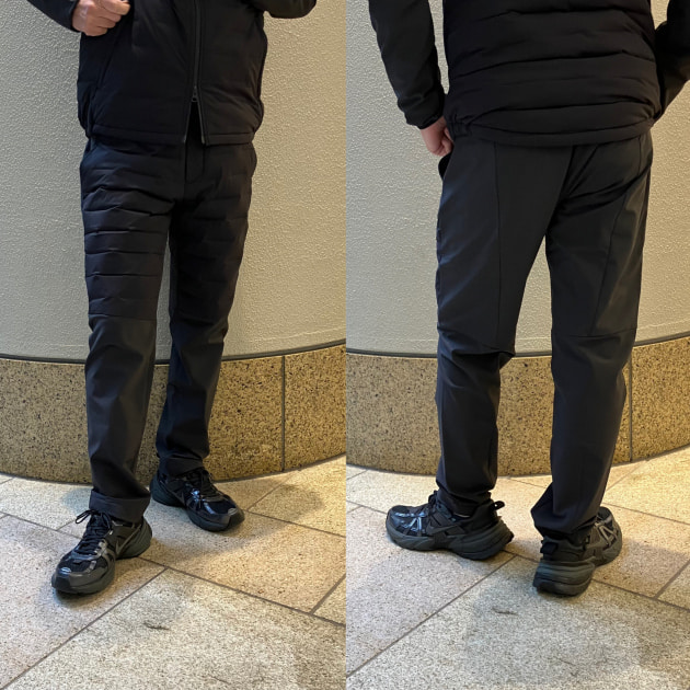 全アイテムに着用しているパンツは防風機能付きのスッキリシルエットパンツです。