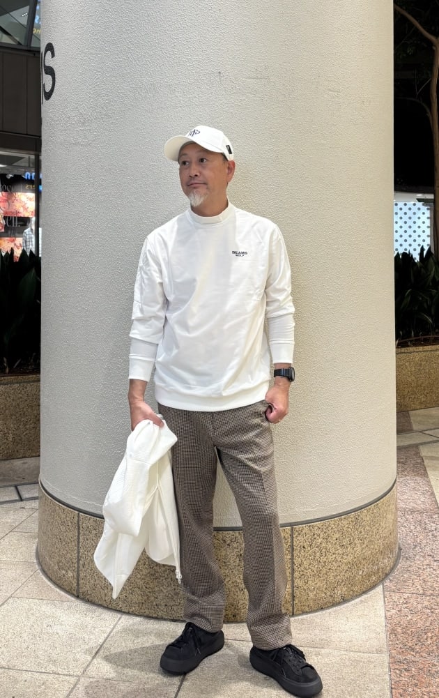 インナーにうすめのポロシャツやモックネックシャツを着るのがおすすめ☆