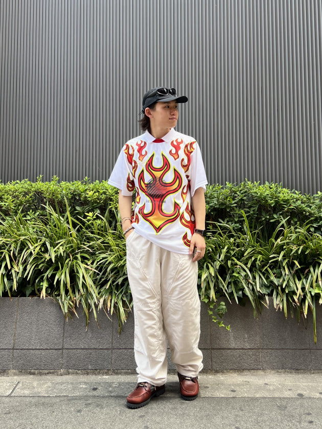 蛍光色が際立つスタイリングですが、シンプルにデニムで合わせてもGOOD!着てみると合わせやすいなと思いました。
