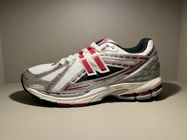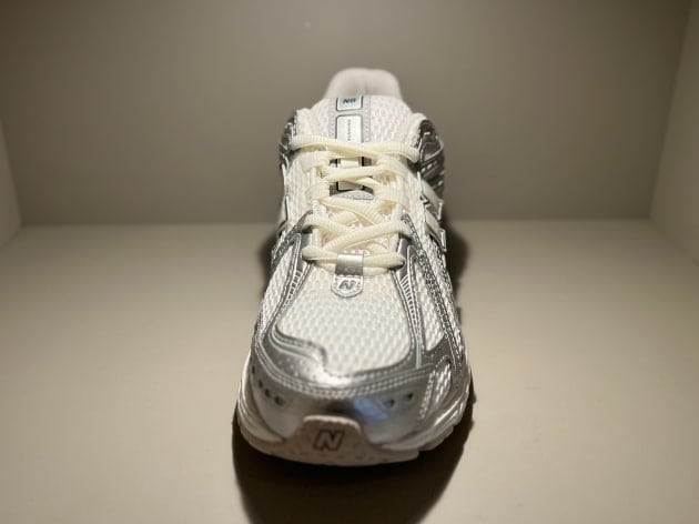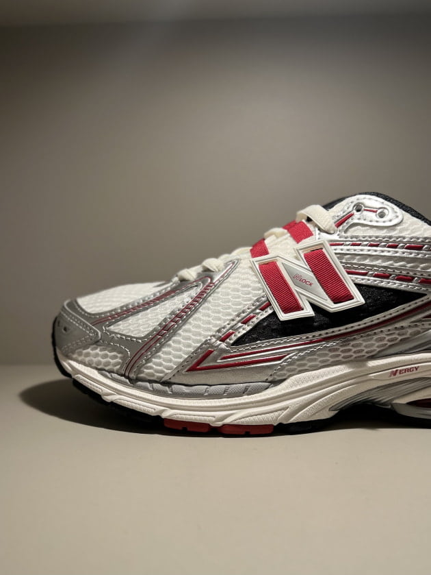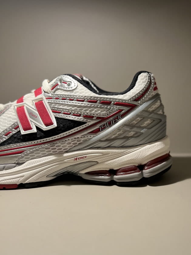 当モデル最大の魅力としては、クラックドレザーで立体的な仕上がりとなった『N』ロゴと上質なフルグレインレザーを使用したホワイトアッパーかなと!