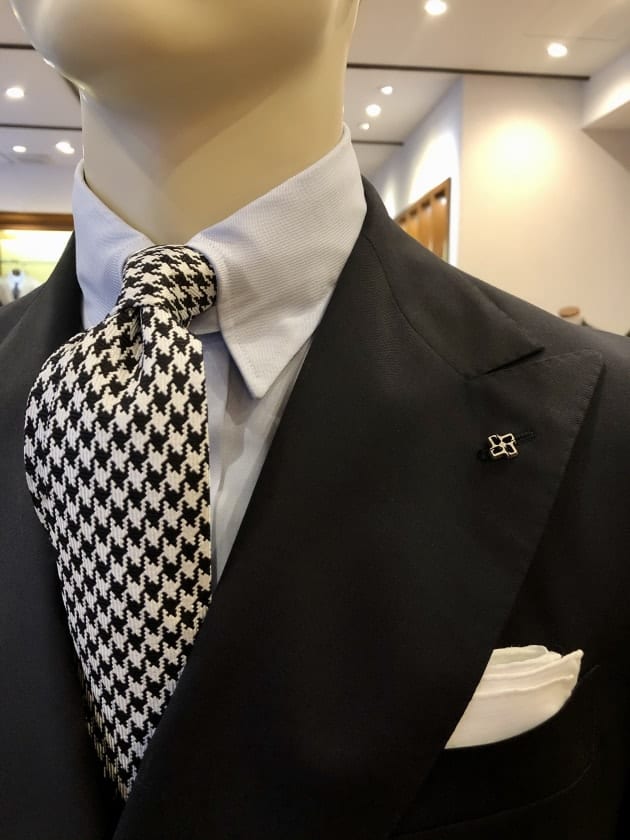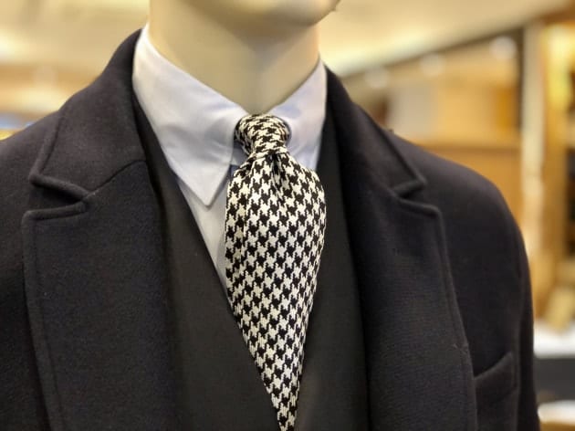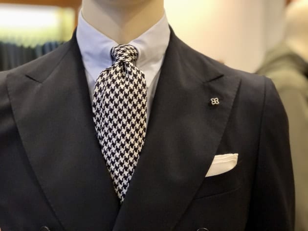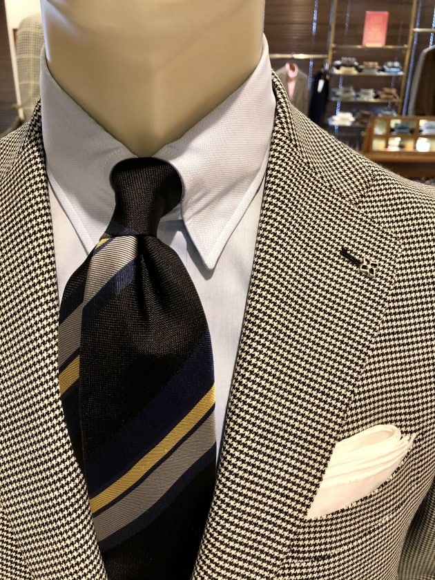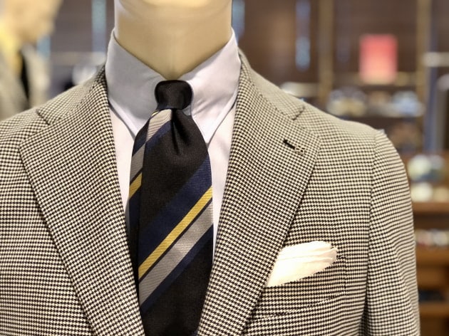 バストトップだと、本当にスーツの様相です。モダンというよりは、生真面目なクラシックスタイル。スーツ向きのネクタイもジャケパン向きのネクタイも、どちらも網羅する汎用性が魅力です。