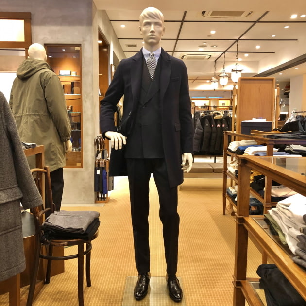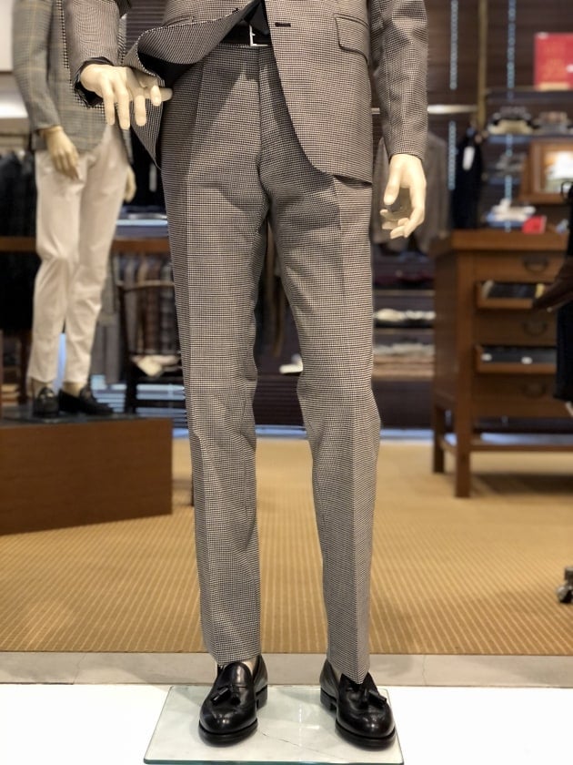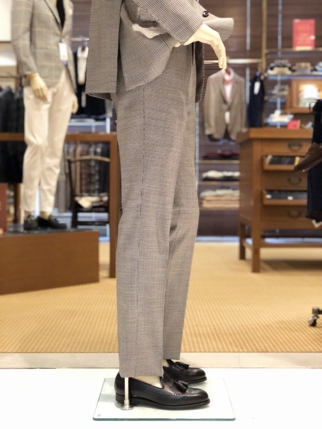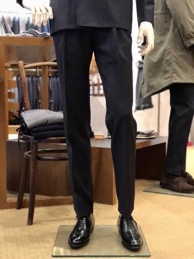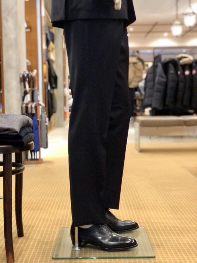 撮影時にはまだ入荷していなかったセットアップのパンツ。現在は、共地のドローコードパンツが入荷していますので、手軽で気軽なスーツスタイルも可能です。