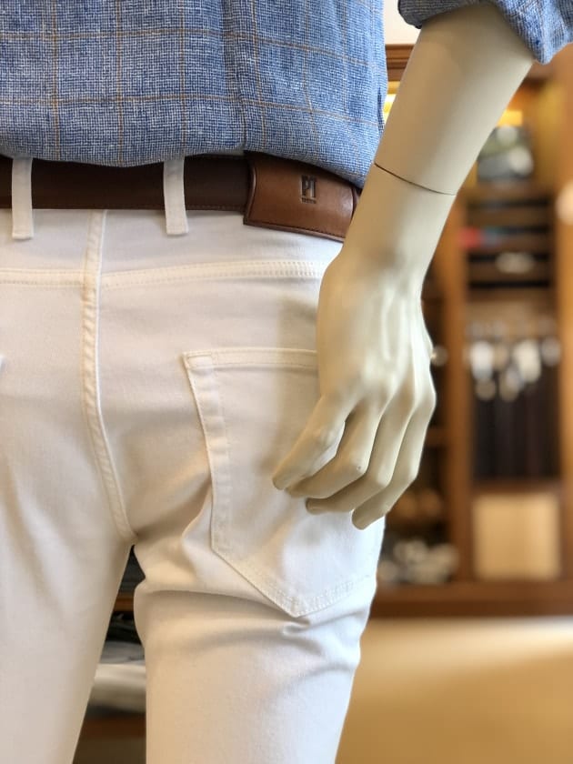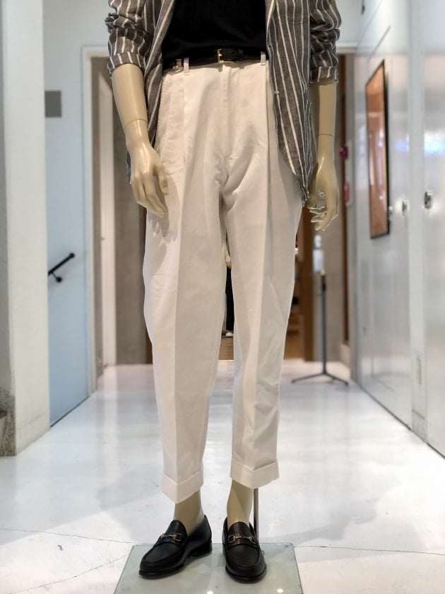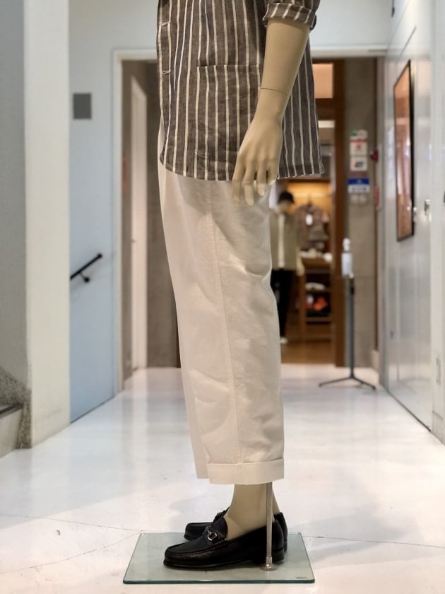 テーパードシルエットがお好きな方には響かないシルエットかもしれませんが、ワイドのストレートシルエットとは言え、極端ではないところが絶妙なのが〈PT TORINO〉の良いところ。味変感覚でいかがでしょうか。