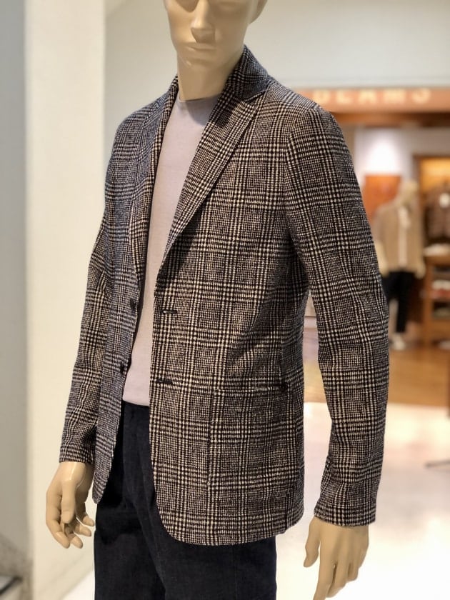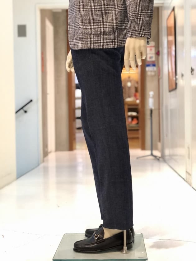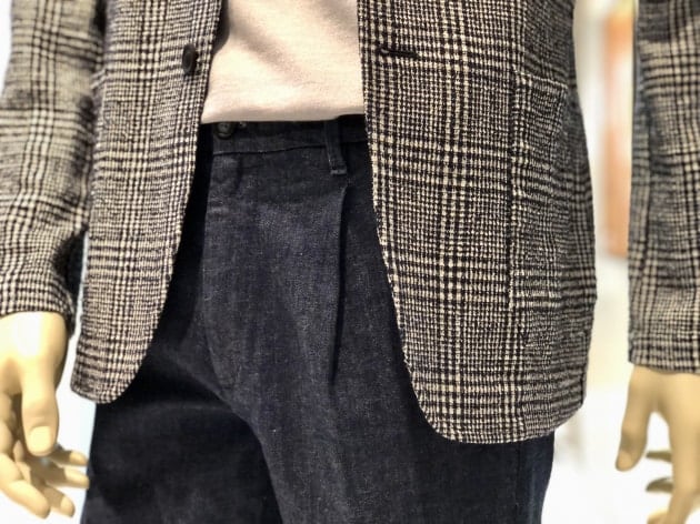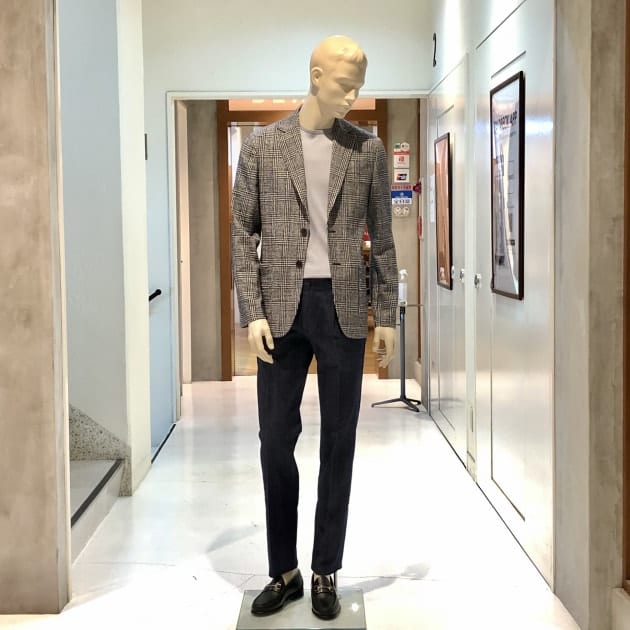 私の場合、手持ちのグレンプレイドスーツの組下を使って、時々ジャケパンスタイルも。「じゃあ、いらんね…。」なんて仰らず、スーツの組下とはまた違う汎用性の高いシルエットなのです。