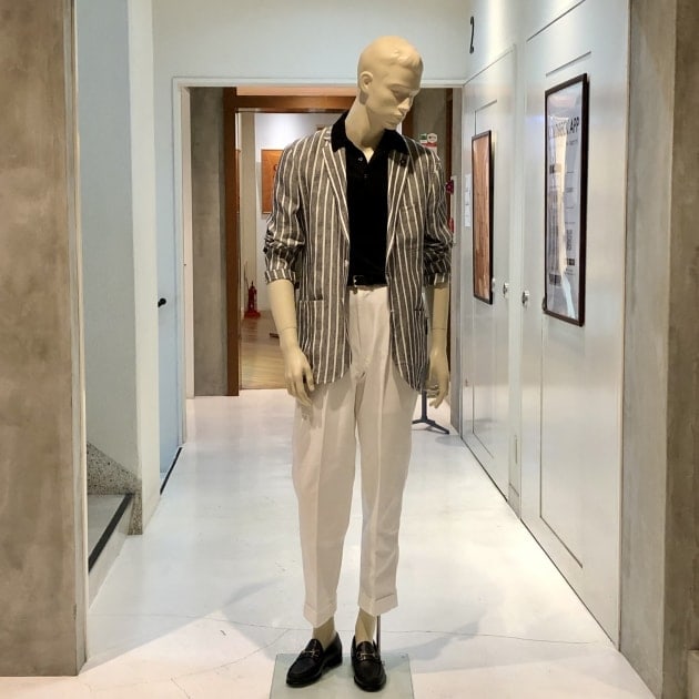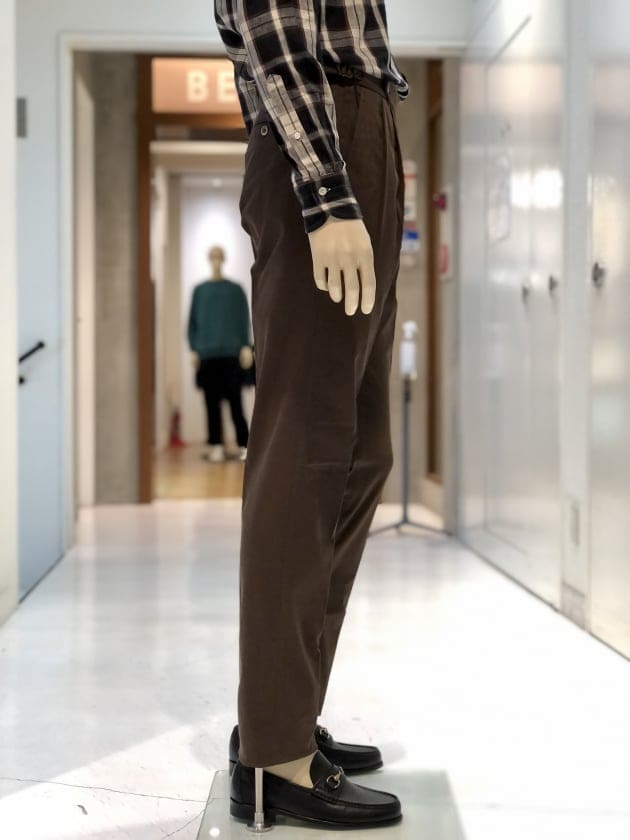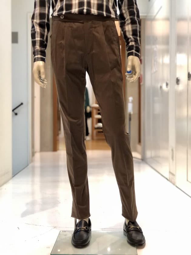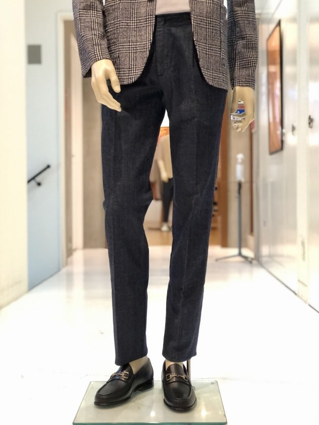 皆様が必ずお待ちであろうグレイ系ウールパンツの延長にあり、ジャケットなどの上物は無地に限りますが、特に難しい柄ではありません。