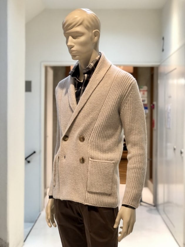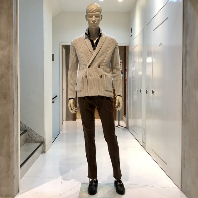 カバーオールと聞けばワークウェアの印象ですが、ニットウェアにも定評のある〈LARDINI〉らしく、私としては品の良い襟付きカーディガンくらいの羽織る感覚。