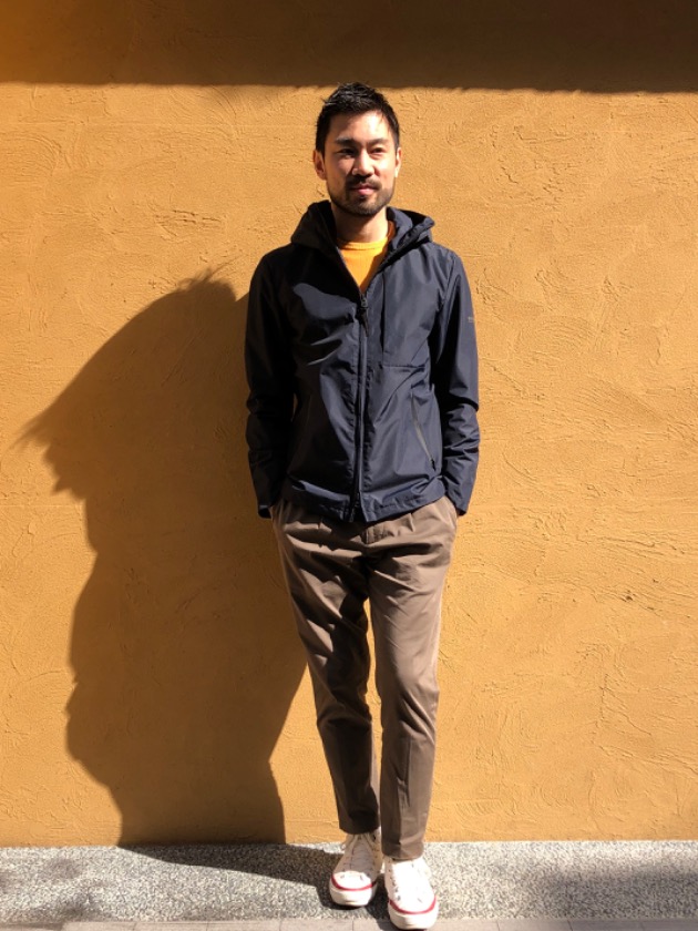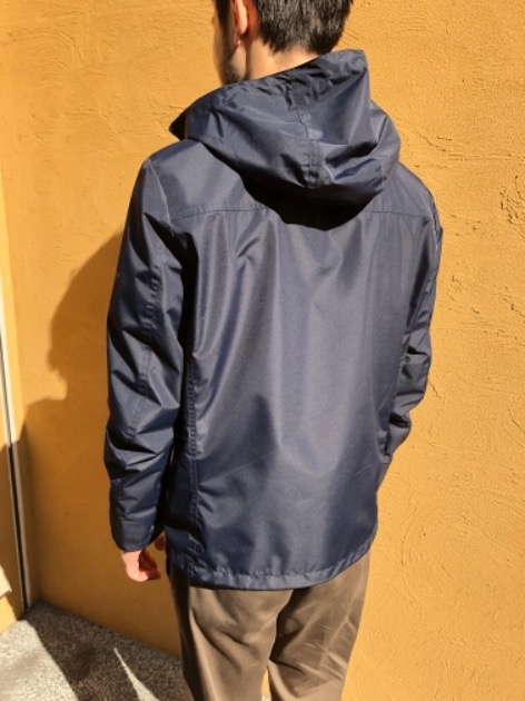 アウター、いわゆるシェルについての詳しい構造は、オンラインショッピング内のアイテム説明をご覧いただくとして、簡単に説明しますと、環境に配慮したリサイクルナイロンに、更に環境に配慮した撥水加工を施し、縫い目全てにシームシーリングを配した事で透湿防水機能を完備しています。
