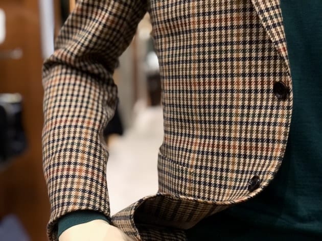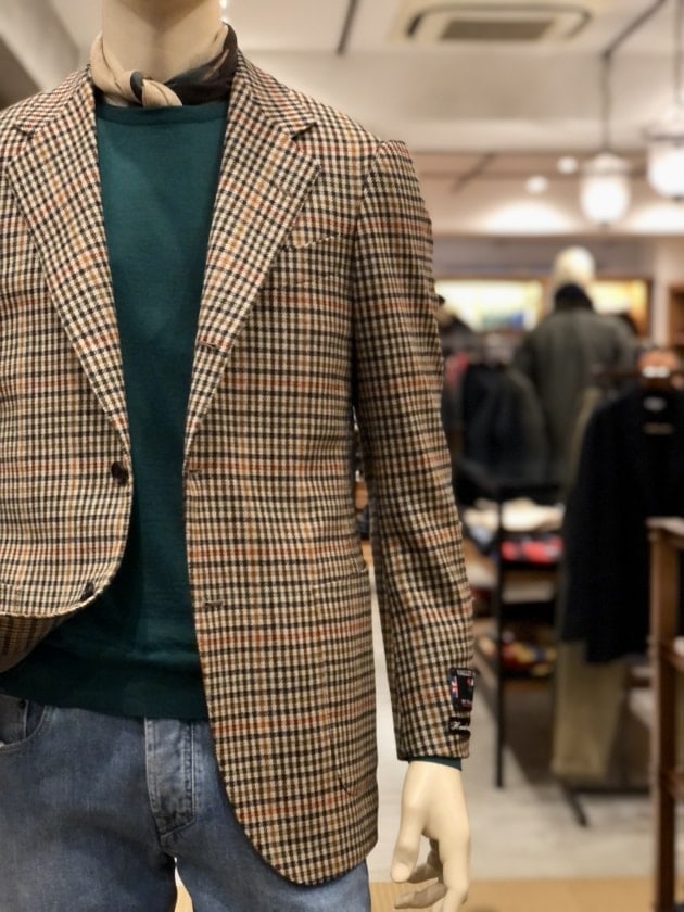 〈TAGLIATORE(タリアトーレ)〉の別注ミックスファブリックグレイハウンドトゥースジャケットです。