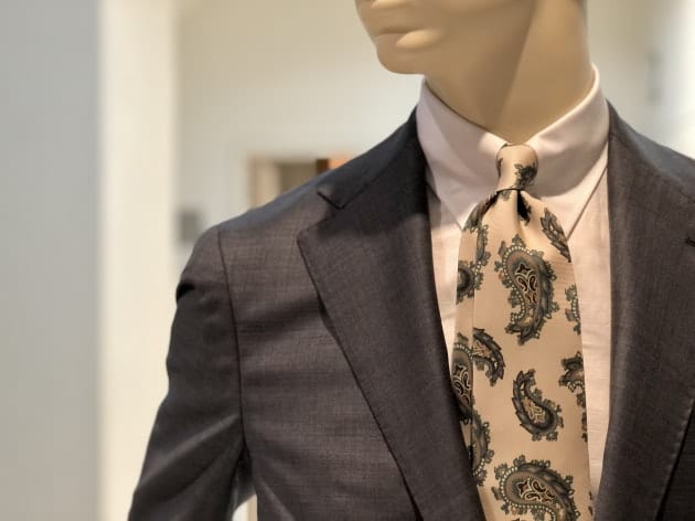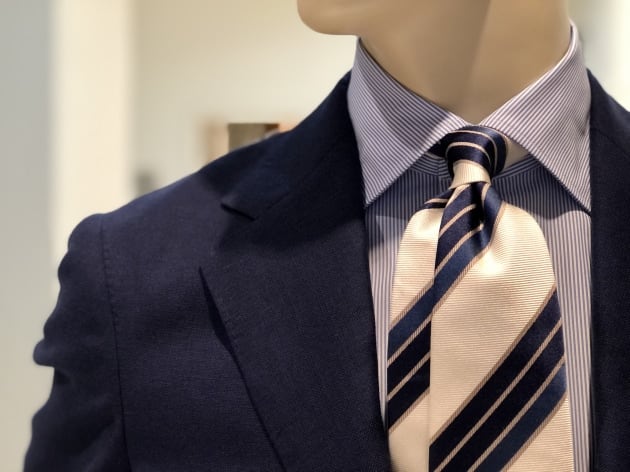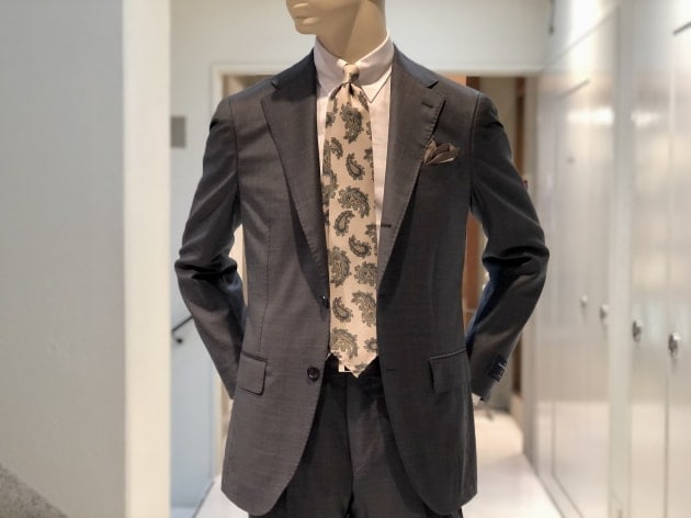 恐らくは、ポロシャツやクルーネックのインナーが妥当であろう今回のジャケット。ややハードルの高いタイドアップに挑戦してみました。