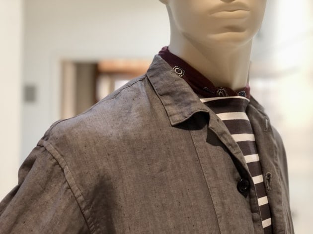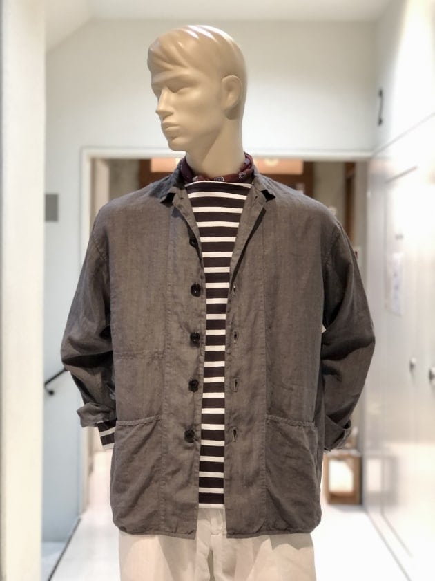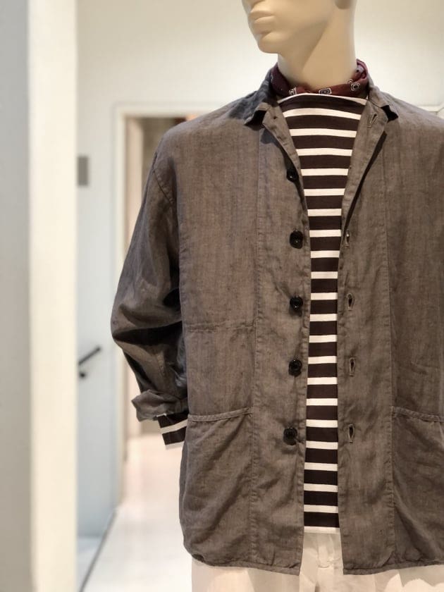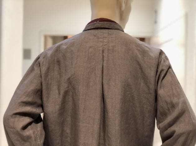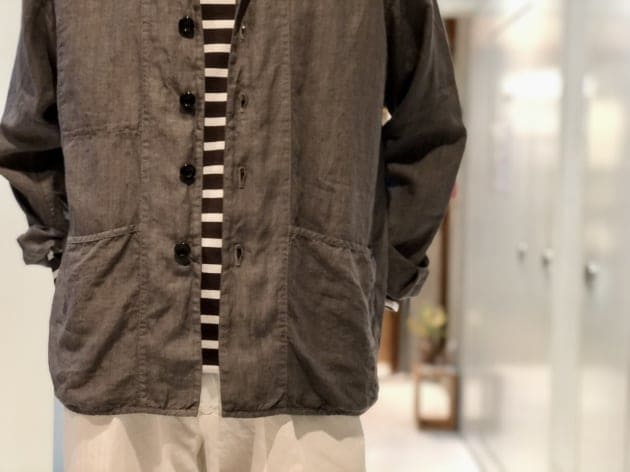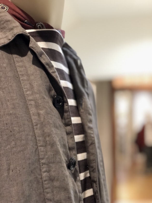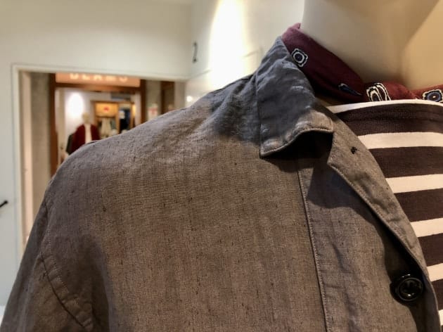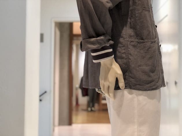コットン59%ポリエステル22%リネン15%その他4%のざっくりとした甘い織りとは裏腹に、滑らかなタッチと鈍い光沢が放つ、色気と品も兼ね備えます。