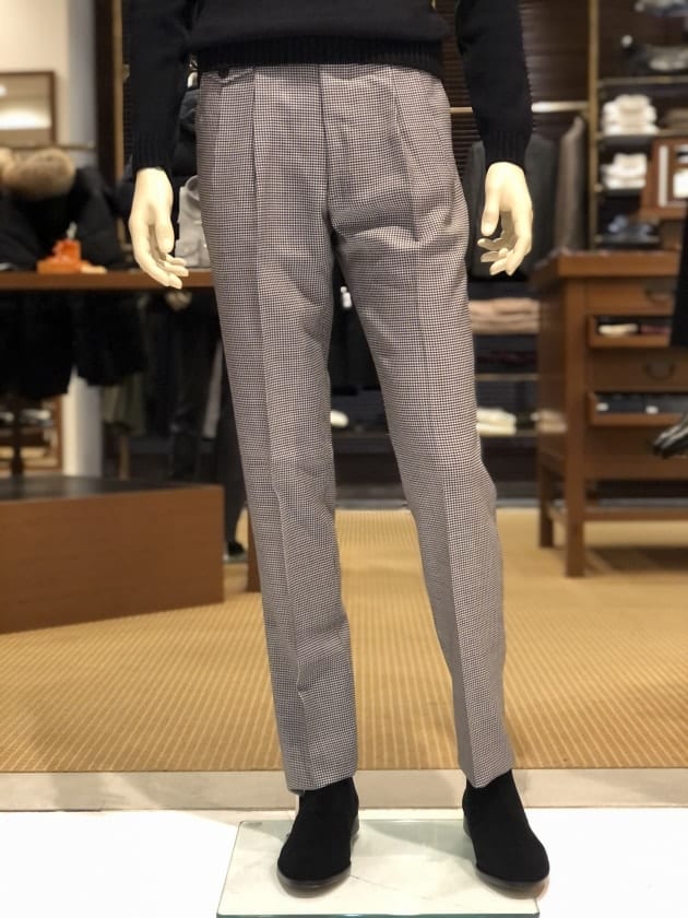 〈TAGLIATORE〉といばハウンドトゥース、と勝手に思っていますが、他のブランドには無い独創的で、何より悪目立ちしない控えめな配色が魅力です。