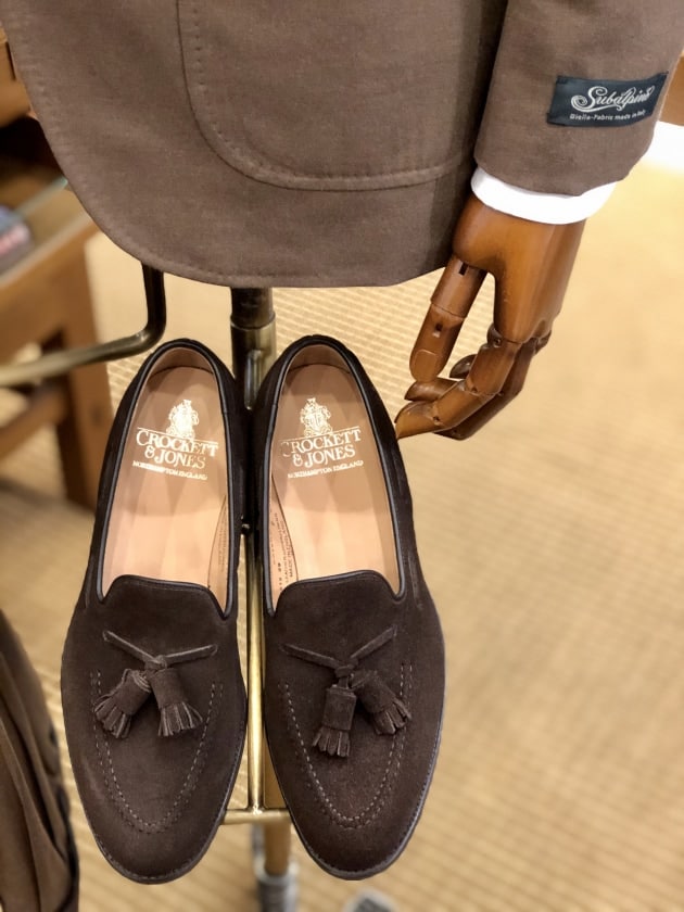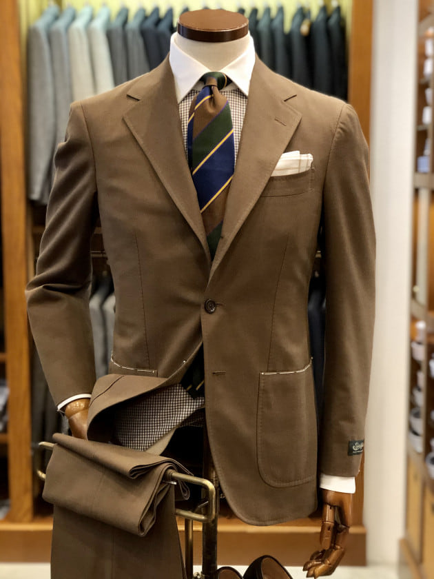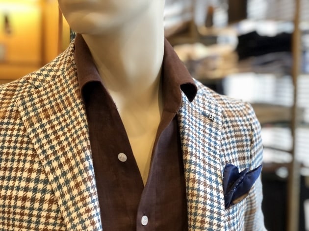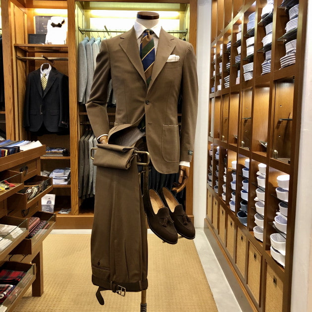 お若い方に先入観を持ってはいただきたくないのですが、比較的オジサマに人気の〈Brilla per il gusto〉のスーツ。〈BEAMS F(ビームスF)〉とオリジナルスーツを対極する、比較的スリムなシルエットに皆様惚れています。
